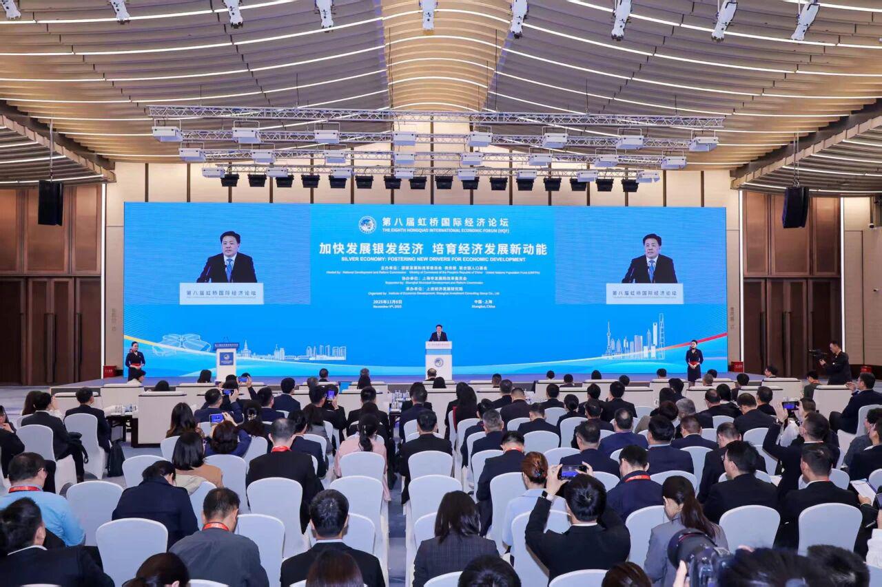 2025年11月6日下午,由国家发展改革委、商务部、联合国人口基金共同主办,上海市发展改革委协办、上咨经济发展研究院承办的第八届虹桥国际经济论坛“加快发展银发经济 培育经济发展新动能”主题论坛在国家会展中心(上海)举行,国家发展改革委副秘书长肖渭明出席并致辞。本次论坛围绕银发经济发展趋势、银发群体需求变化、银发科技创新、银发产业融合以及国际合作等议题,搭建交流对接平台,为推动银发经济高质量发展凝聚共识、贡献智慧。